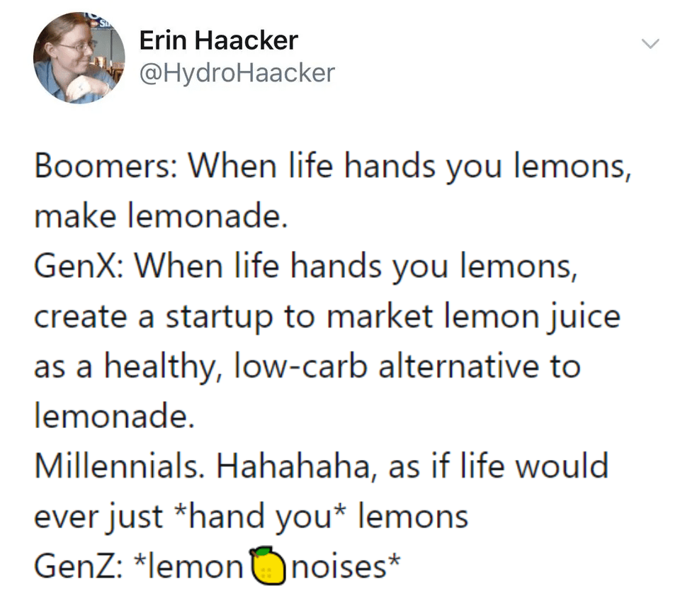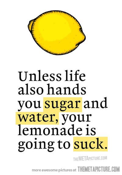 This was about his disabled friend who did not let his shortcomings prevent him from having a good life, and when you think about it this way, it clicks right away! Lemons, usually, represent sourness – meaning difficult or adversity in life – while lemonade is symbolic of turning it into something more desirable. Making the best out of a bad situation.